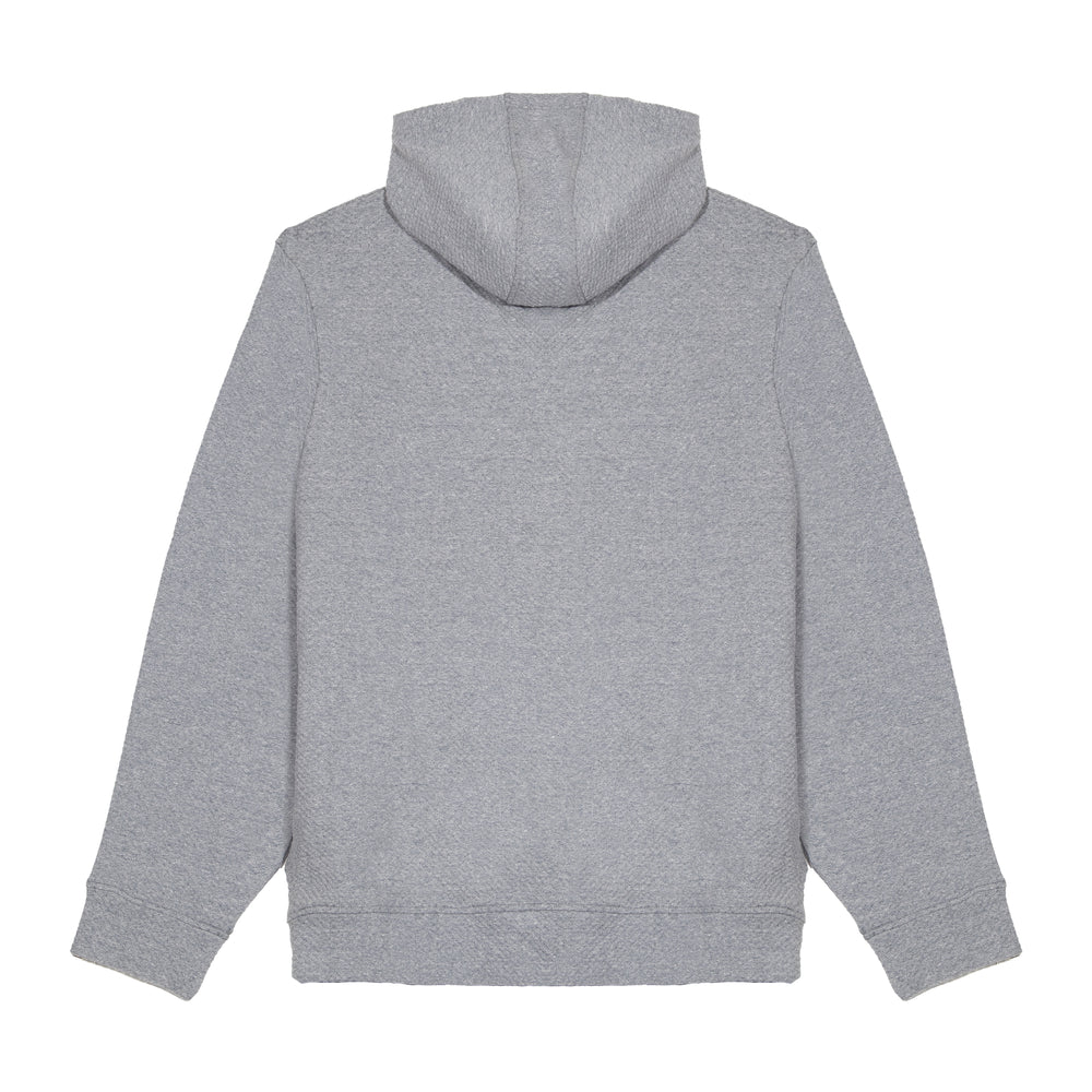 The Skyline Textured Pullover Hoodie, designed for comfort and style. Made from a premium Textured Double Knit fabric blend of 63% cotton, 32% polyester, and 5% spandex, this hoodie features a unique honeycomb pattern that enhances breathability and functionality.